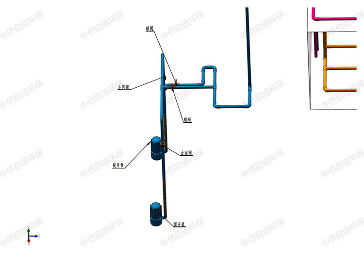 3、根據(jù)安裝圖,連接管道,設(shè)備就位后連接管道用橡皮墊緊固好,使連接處不滲漏。