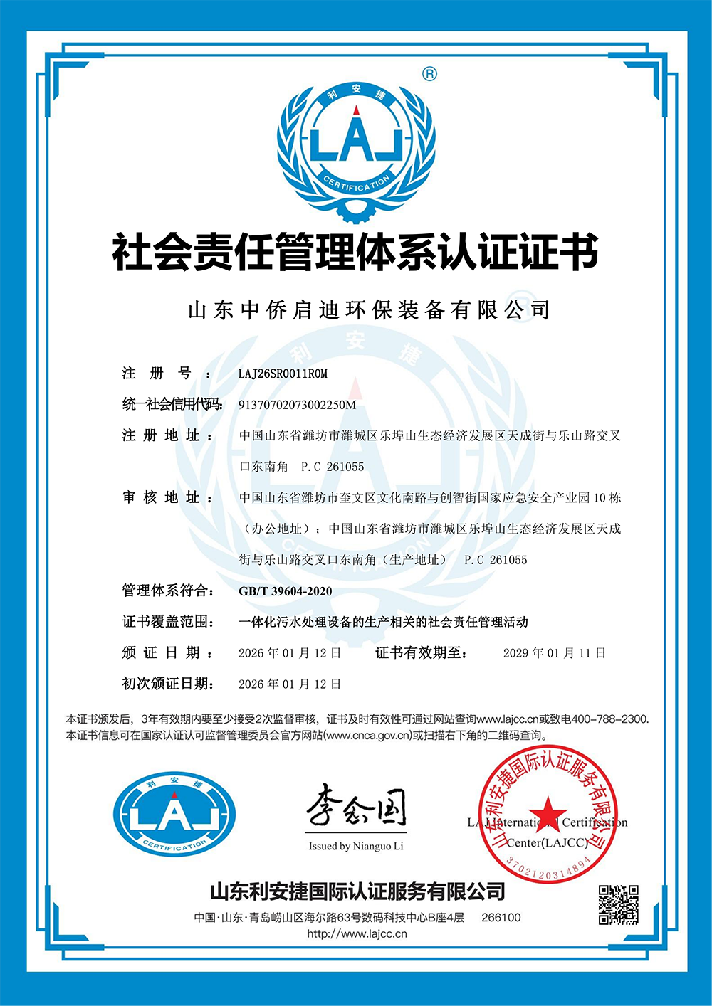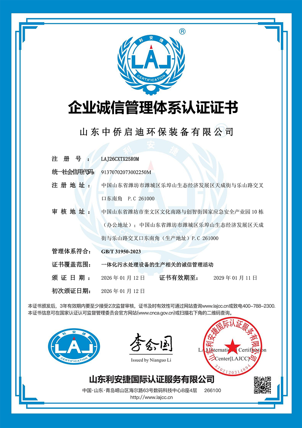 此次三項權(quán)威認證的集中落地,是對中僑啟迪在企業(yè)社會責(zé)任、誠信經(jīng)營管理和產(chǎn)品售后服務(wù)質(zhì)量的全面肯定。未來,中僑啟迪將繼續(xù)以更高要求、更優(yōu)質(zhì)服務(wù),在污水處理設(shè)備行業(yè)中樹立標桿,在企業(yè)的高質(zhì)量發(fā)展道路上穩(wěn)步前行,為水處理行業(yè)發(fā)展貢獻更大力量。